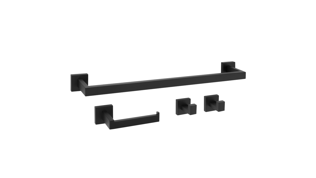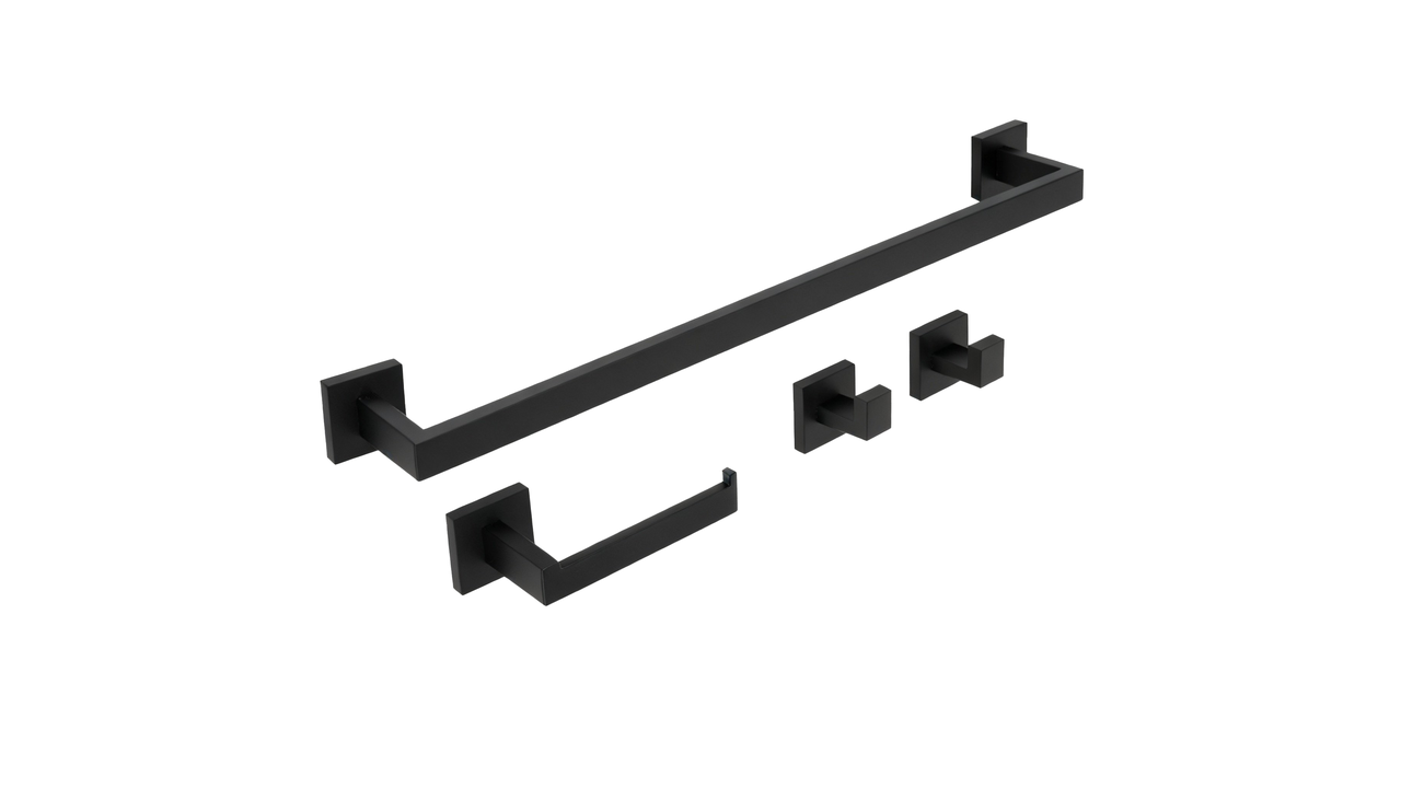 The Rio bathroom accessories set is the perfect combination of durability, functionality, and elegant design. The set includes a long towel rail, a toilet paper holder, and two bathroom hooks, creating a cohesive and stylish ensemble for any modern bathroom.