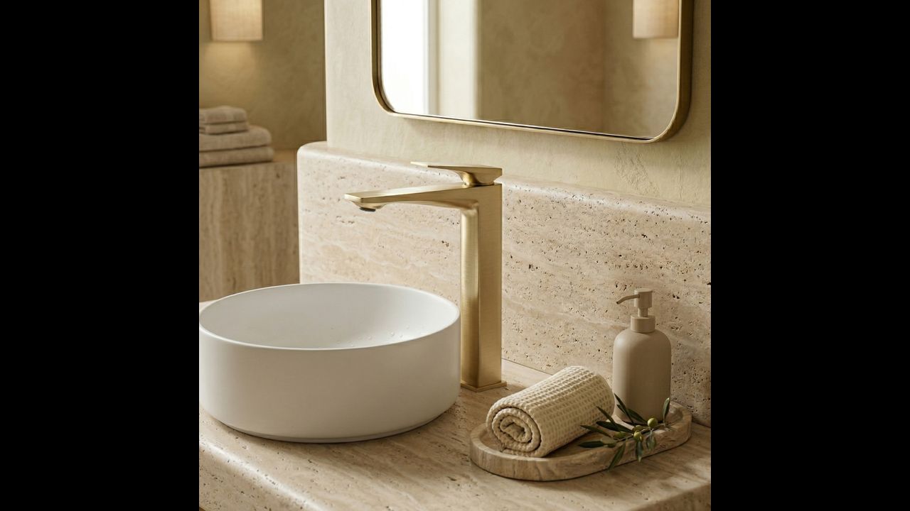 By choosing the Prime Brushed Gold tall basin mixer tap, you gain a combination of style, functionality, and timeless elegance. It is a unique element that perfectly highlights the character of a countertop basin and gives the entire arrangement a luxurious finish.