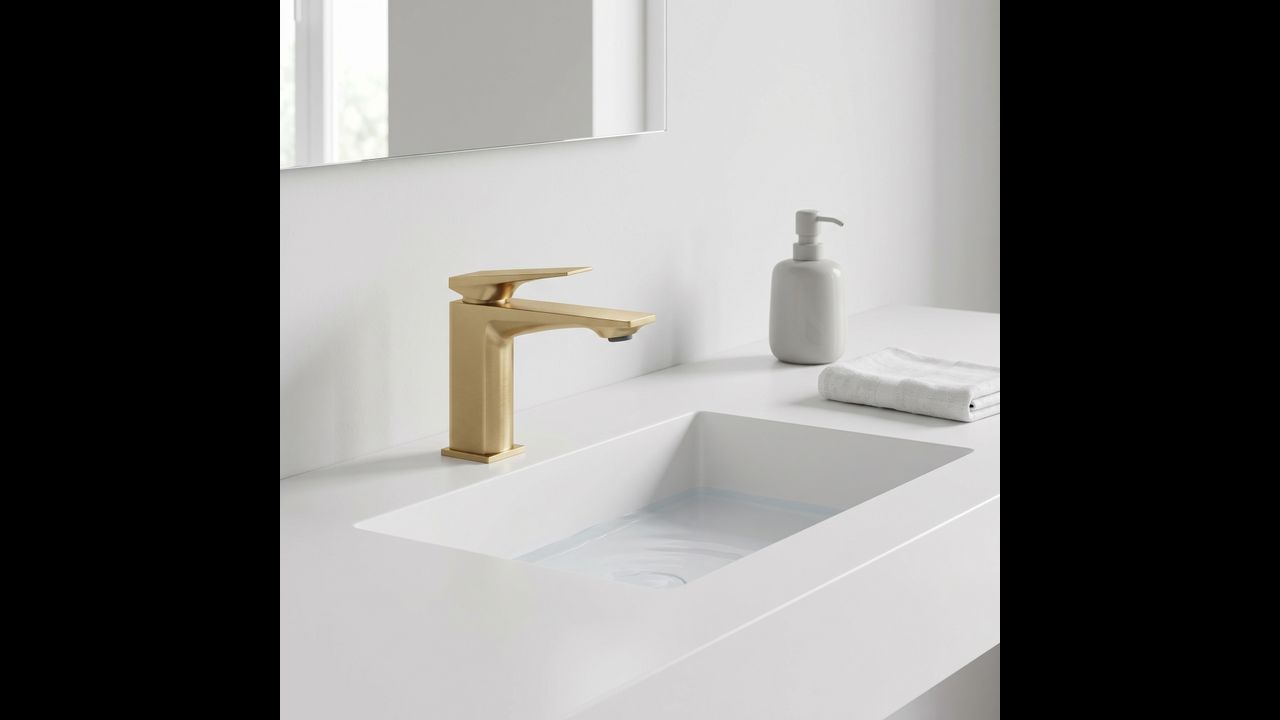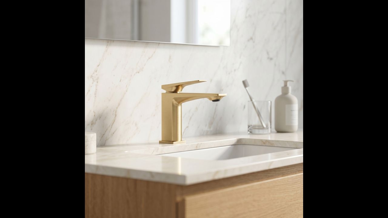 The Prime washbasin faucet in brushed gold is an elegant choice for modern and luxurious bathrooms. Its geometric, bold lines and low-profile construction give the washing area a distinctive character, while the noble brushed gold finish introduces warmth and refined style to the interior.