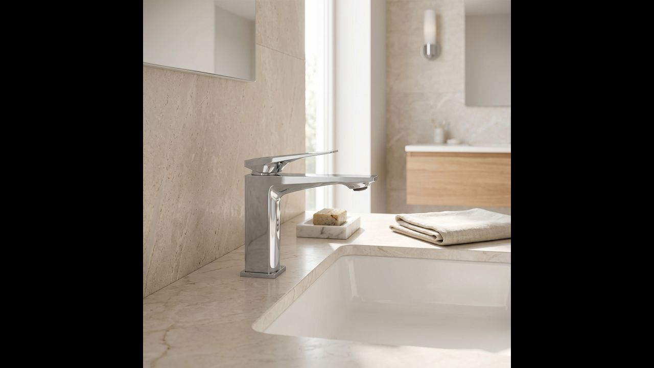 The Prime washbasin faucet in chrome finish is a modern choice for people who appreciate clean form and universal elegance in the bathroom. Its low, geometric body with distinct lines makes this fitting blend perfectly with any ceramic color palette, giving the washing area a modern, architectural expression.
