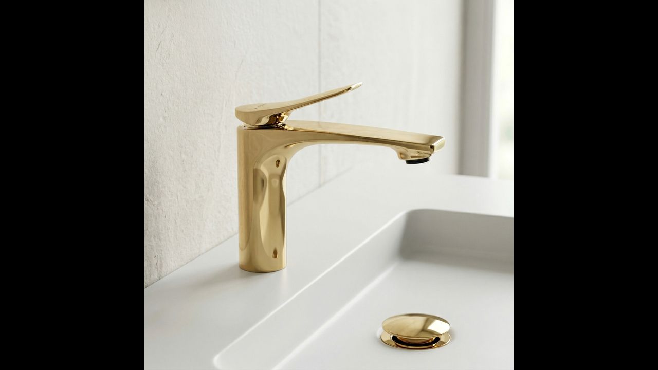 VISION premium washbasin faucet in gold finish is a perfect choice for those who appreciate timeless style and elegance in the bathroom. Its refined lines and glossy finish make it ideal for both classic and modern interiors, including glamorous arrangements.