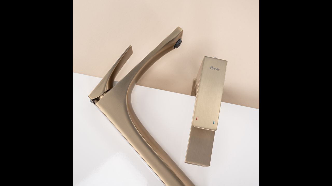 The Joe washbasin tap in brushed gold finish is a proposal for those who value elegance and modern style in the bathroom. Its geometric form and subtle brushed gold surface make it a perfect match for both classic and designer interiors.