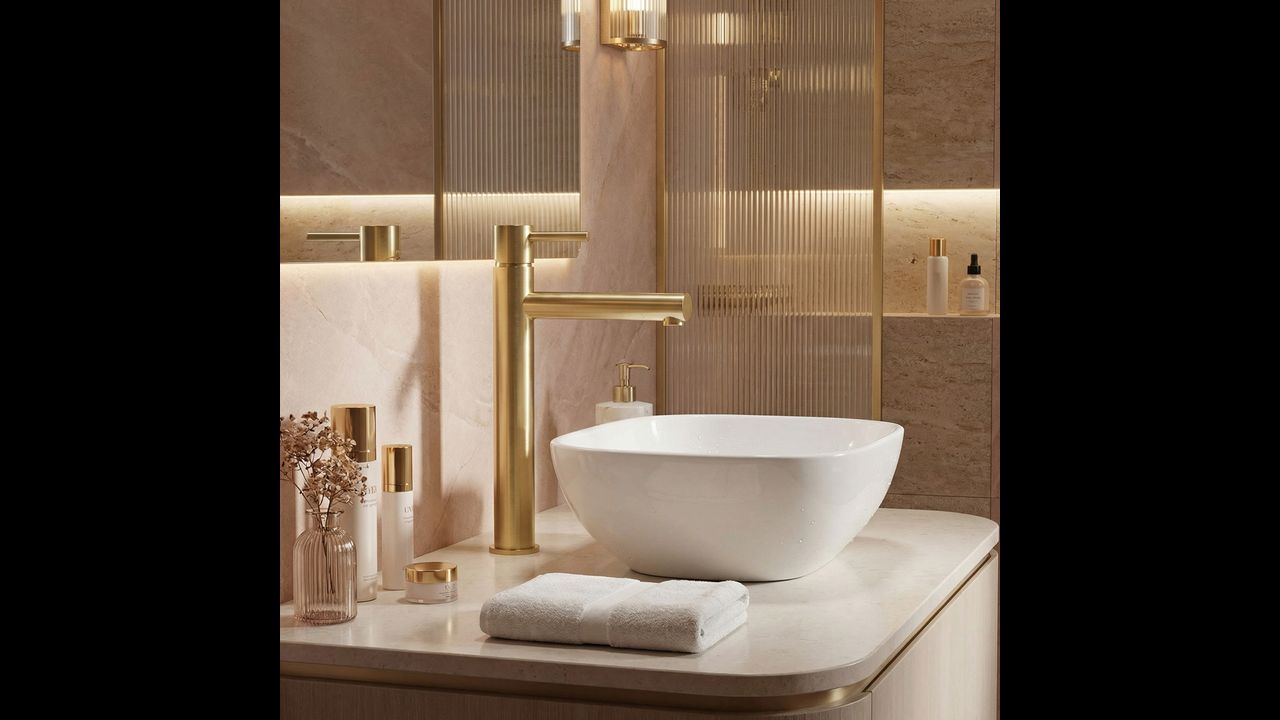 We present to you the beautiful and extremely functional and modern Rea Tess Gold faucet. It is a product that will perfectly fill your bathroom space while maintaining an impeccable appearance and interior aesthetics. The faucet is designed to be mounted on a countertop or basin. It has been made of brass and coated with a gold brushed finish for a phenomenal effect. Thanks to a special production phase, it is durable and easy to clean. The colour has been obtained through a galvanisation process, which guarantees resistance to abrasion and mechanical damage.
