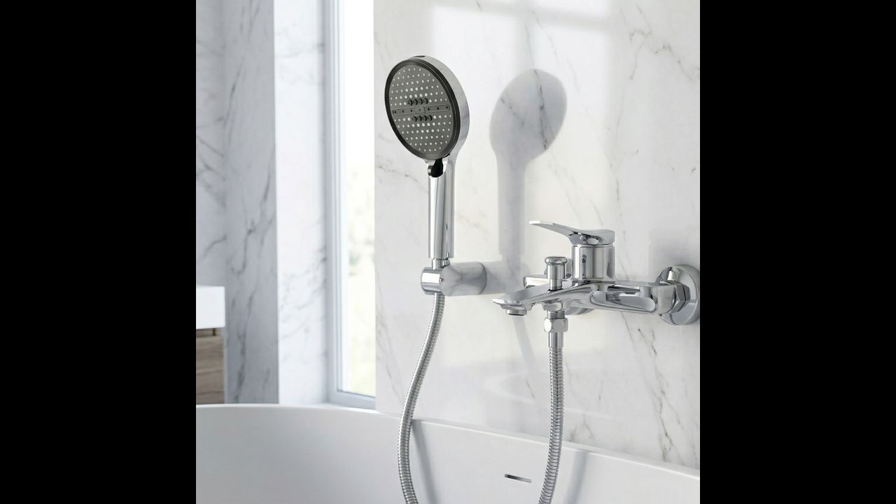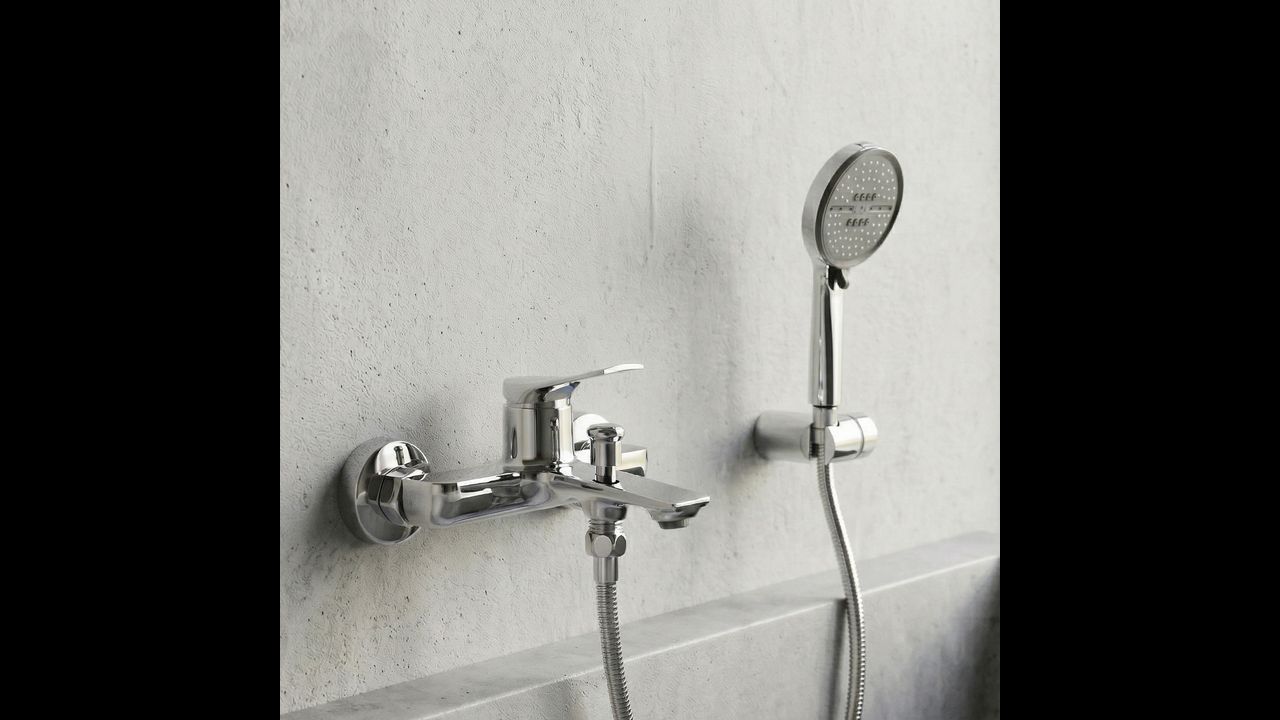Vision bathtub faucet in chrome finish is an elegant choice for modern, well-refined bathrooms. Its slim, distinctive form, wall-mounted installation, and shiny chrome surface add lightness and highlight the contemporary character of the bathing area. The set with a handheld shower is a practical and aesthetic solution for everyday use.