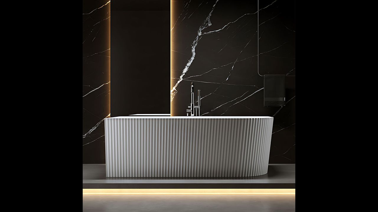 The modern fluted bathtub combines unique design with exceptional comfort. Its distinctive vertically grooved surface gives the interior an original character and perfectly matches trendy bathroom arrangements in modern, glamour, or minimalist styles.