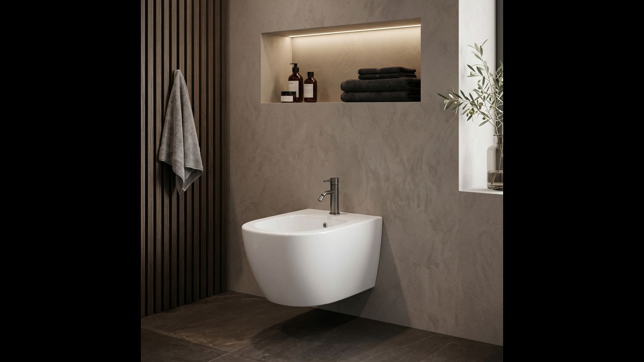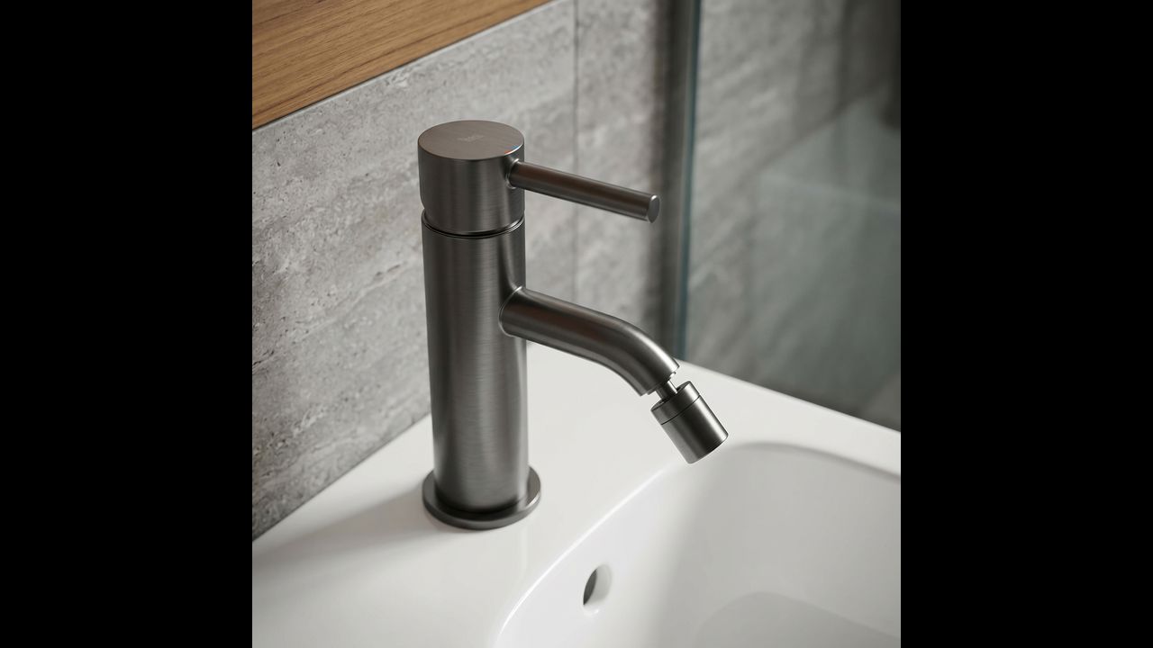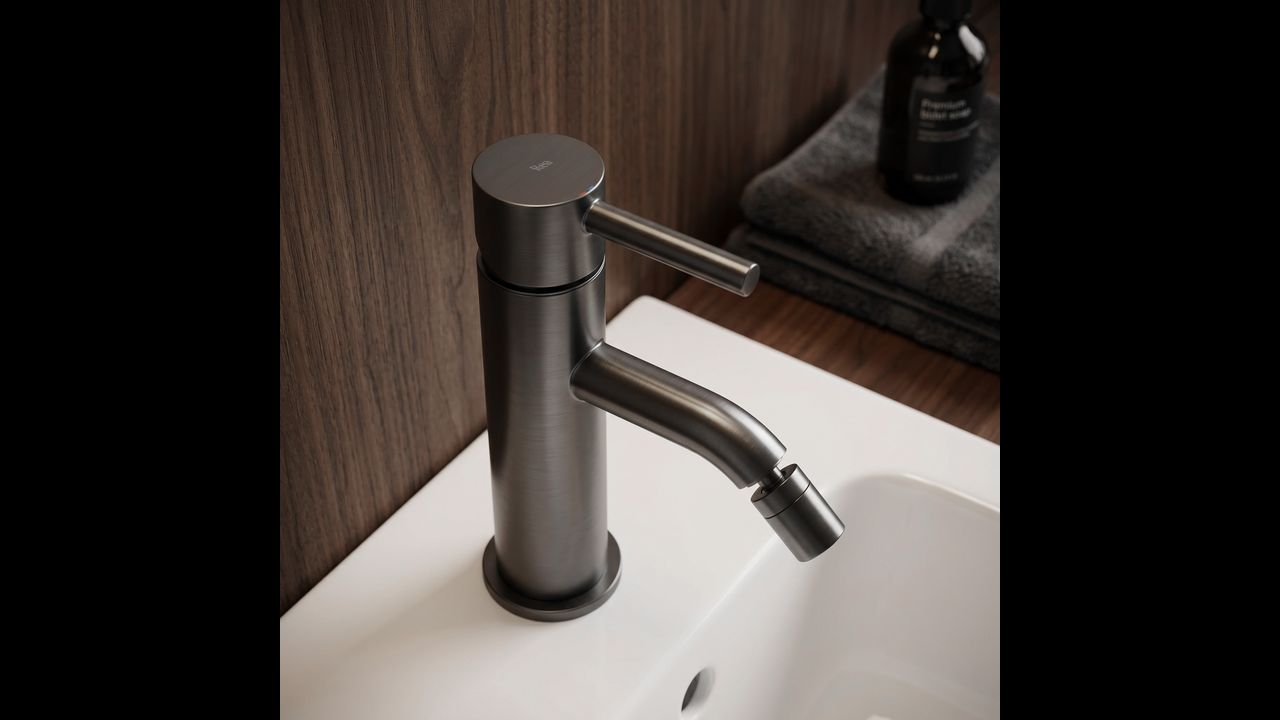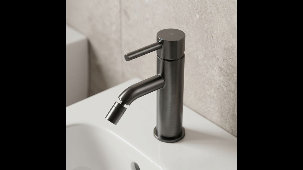 The standing bidet mixer in a Brushed Titanium color is a combination of modern aesthetics and high functionality. Thanks to its simple, cylindrical form, it perfectly fits into current bathroom trends, matching loft and modern style interiors.