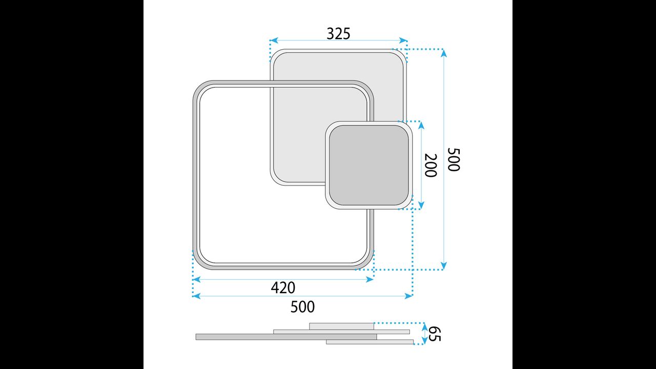 A modern LED ceiling lamp in a gold finish impresses with its geometric form and subtle elegance. The composition, based on a combination of square panels with rounded corners and a delicate linear frame, creates a cohesive, visually light design. The integrated LED light source emits even, soft illumination that gently highlights the gold surface and gives the interior a pleasant, contemporary atmosphere.