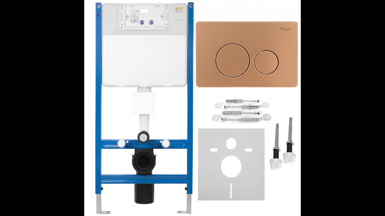 Looking for a solid, universal base for your WC bowl? Discover the Rea K011A-Q concealed toilet frame, combining durability with a complete installation kit. Made of high-quality stainless steel, it guarantees stability and reliability. The set also includes an elegant Type I flush plate in Brushed Copper, made of durable aluminium.