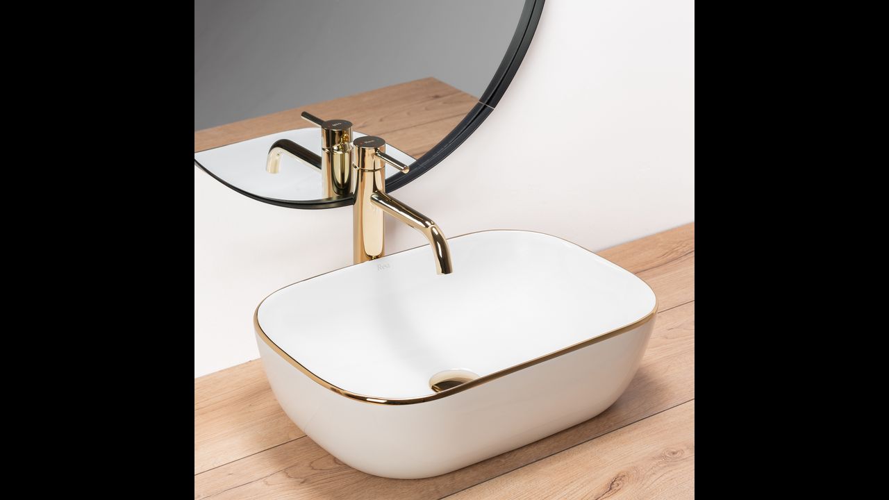 A washbasin with a unique look and functionality of the highest level. If you want to add elegance and simplicity to your bathroom, the Rea Belinda Gold Edge washbasin is just for you. This product is made of high quality sanitary ceramics.