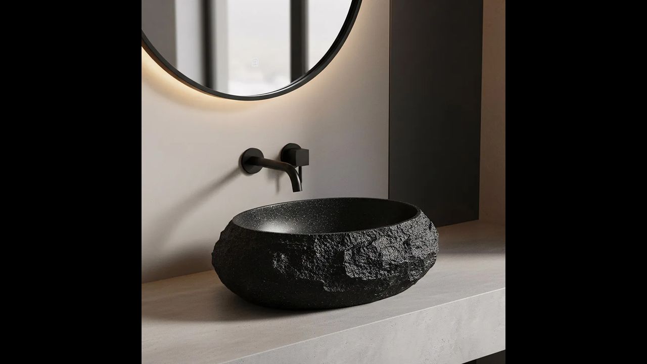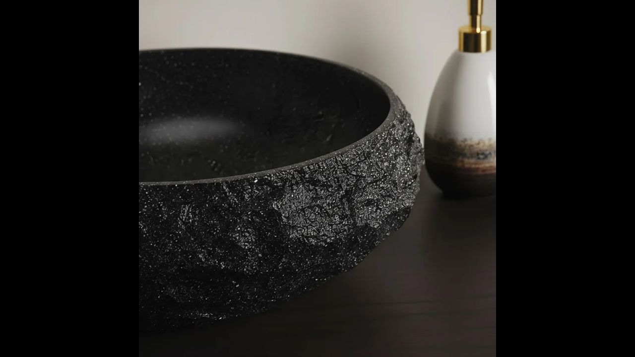 The Mika countertop washbasin is a proposal for those who wish to combine elegance with modernity in their bathroom. Its surface delights with a deep stone-like structure, giving the interior a unique character.