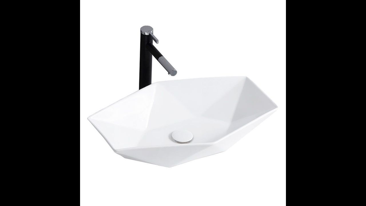 The washbasin is adapted for mounting on a countertop or a cabinet. It is made of high quality sanitary ceramics. The special production phase makes it durable and easy to clean.