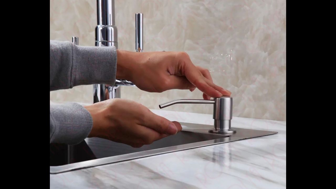 The soap and liquid dispenser fits perfectly into our sinks, which you can find at our auctions. The dispenser is covered with a chrome layer that permanently shines even after repeated use. We cordially invite you to view our offer.