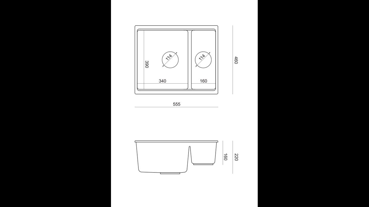 | The width of the sink | 555 mm |