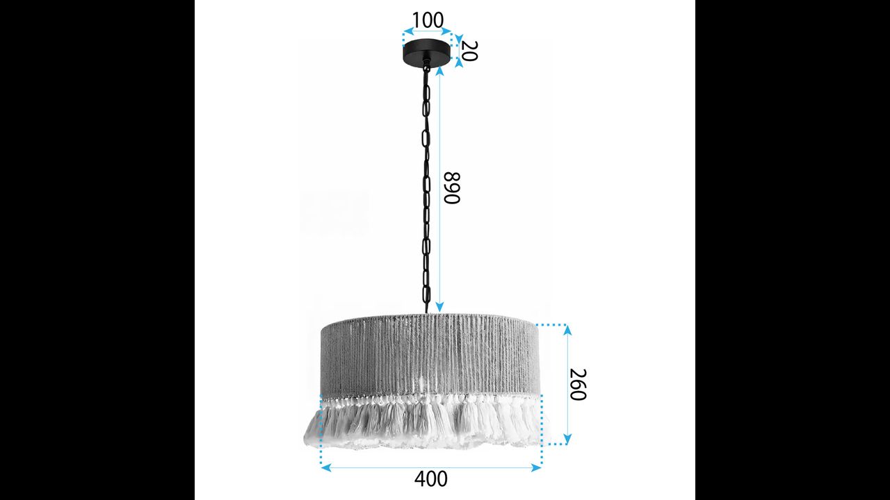 The boho-style pendant lamp enchants with a combination of natural materials and a soft, decorative form. The shade made of jute cord creates a warm, cosy atmosphere, while the decorative fringes add lightness and a characteristic ethnic expression. The entire structure is supported by a solid metal frame, ensuring stability and perfect detailing.