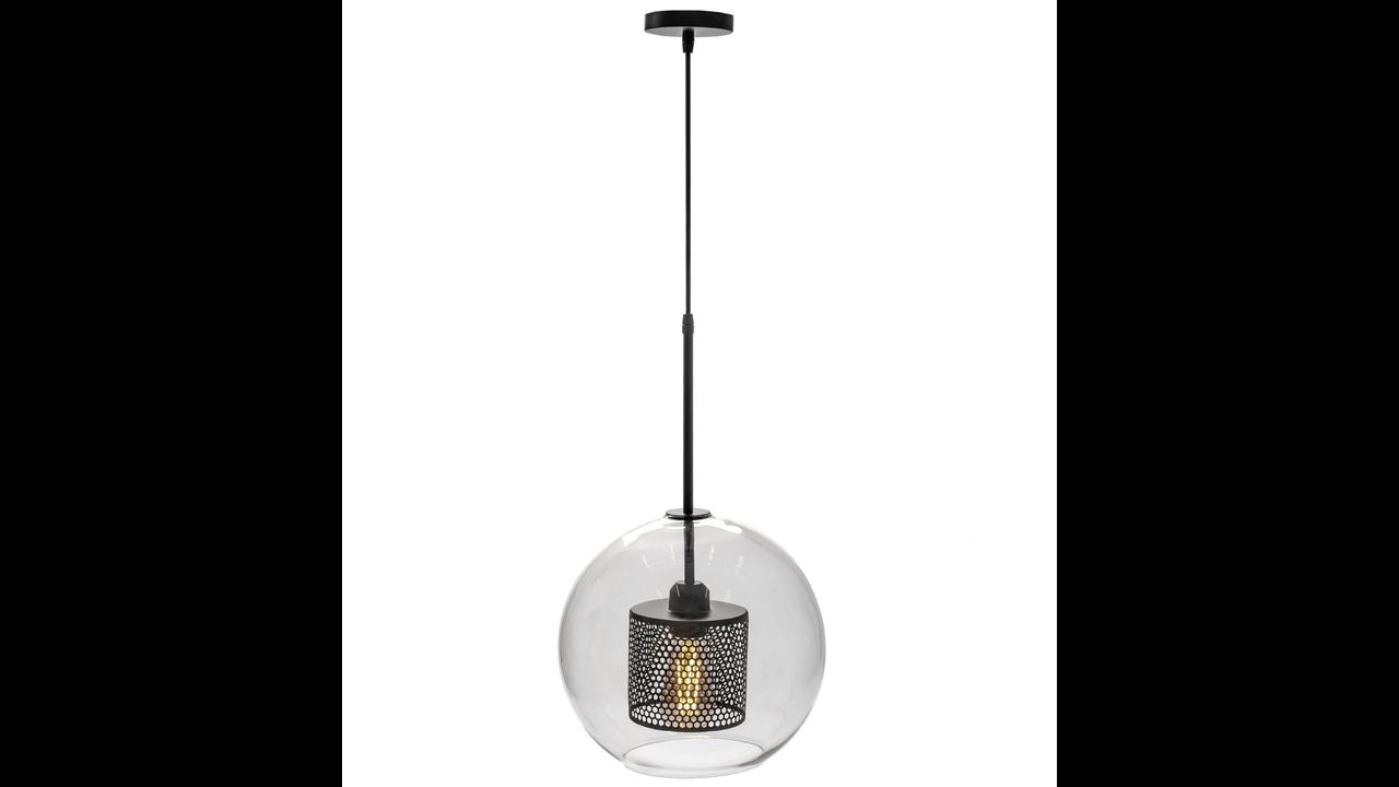 Its finish with a glass shade and metal lampshade gives the lamp a contemporary look. When lit, its transparency and metal mesh give an interesting and unusual effect.