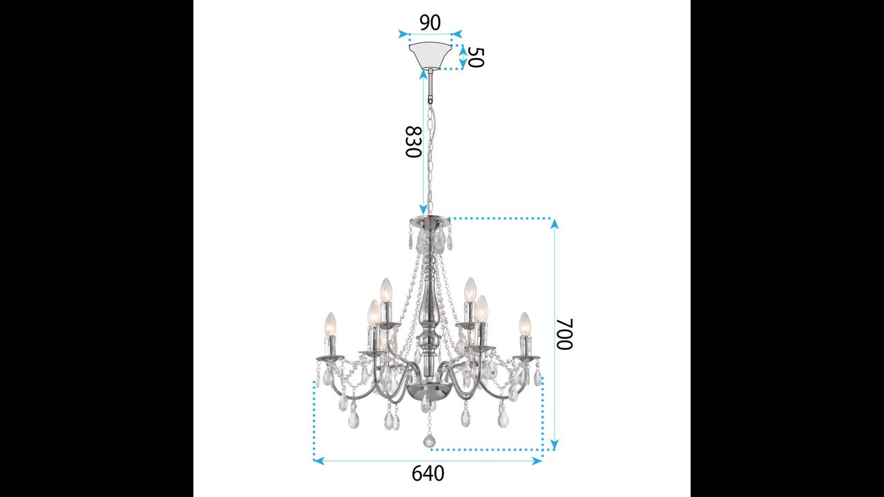 The lamp is perfect for the living room, dining area, hallway, or bedroom, where it will serve not only as a source of light but also as a striking decorative feature. With its classic arm arrangement and decorative chains and pendants, this model fits beautifully into glamour, classic, or modern interiors with a touch of sophistication.