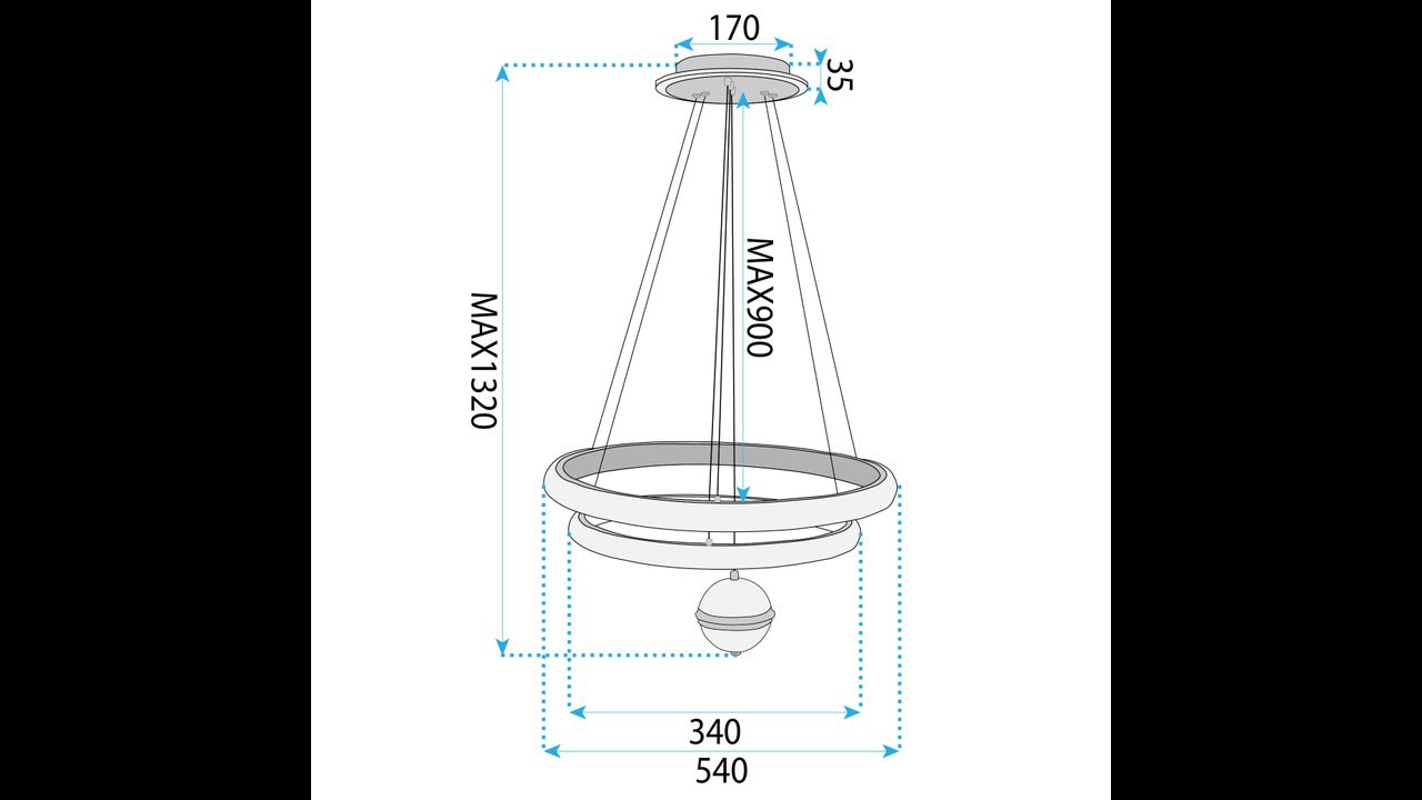 The model stands out for its refined form and generous size, highlighted by a 50 cm ring that becomes a strong focal point within the interior. The supporting cables add visual lightness, giving the lamp a contemporary and highly elegant appearance. It is an ideal choice for those seeking luxurious, decorative LED lighting that also provides pleasant, atmospheric illumination.