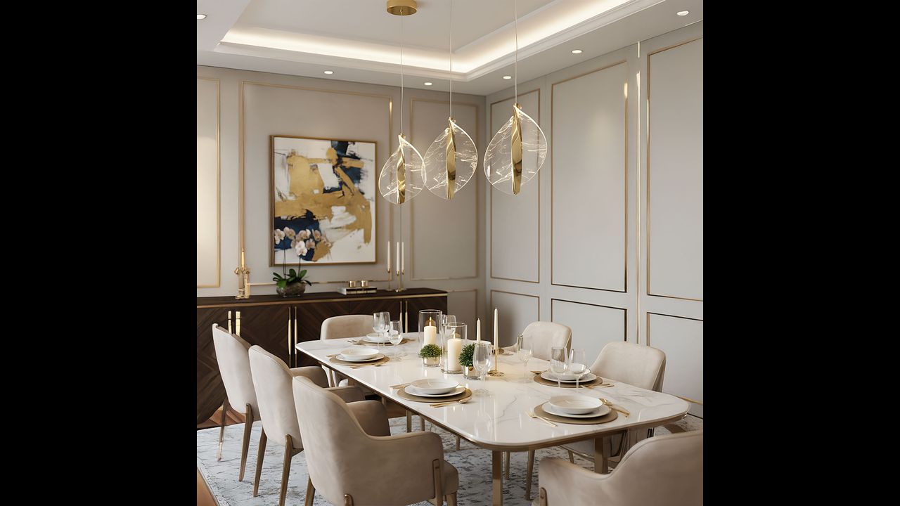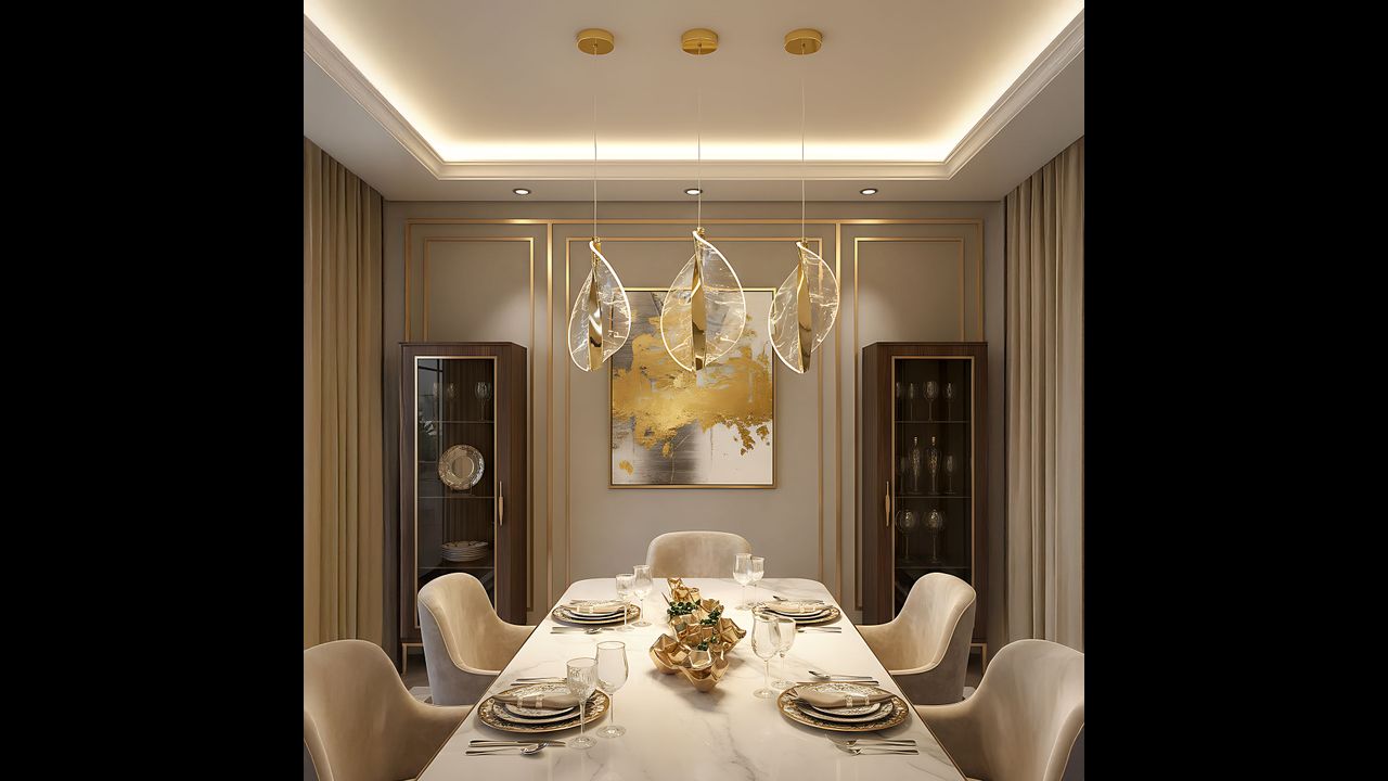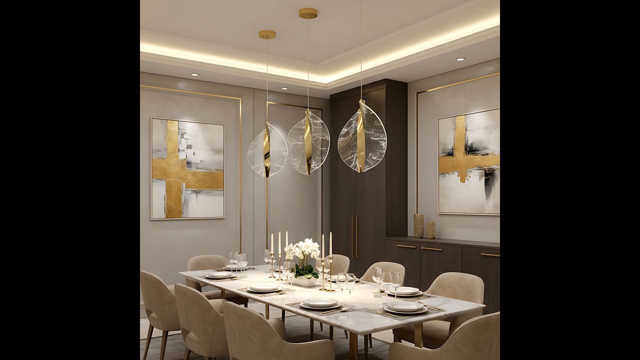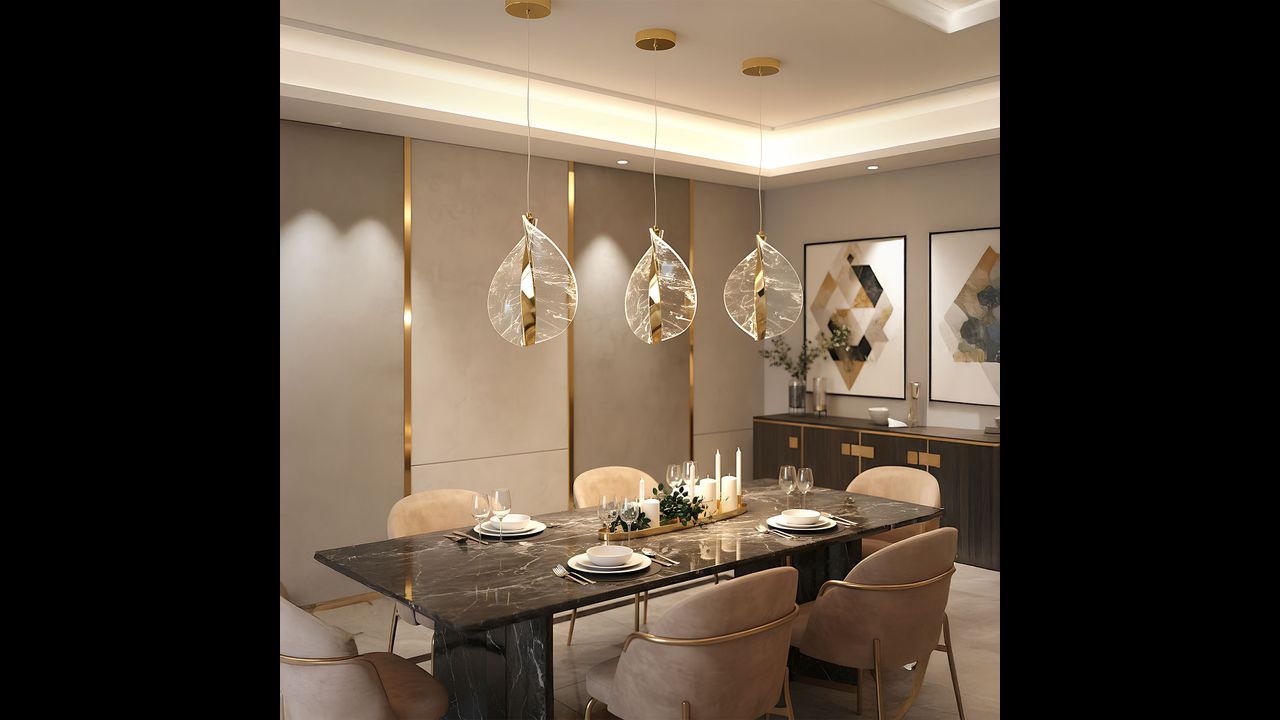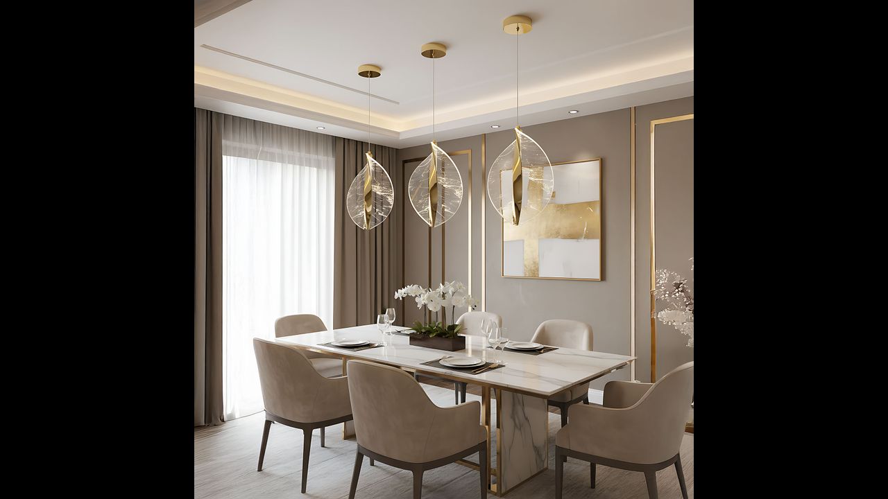 The gold metal canopy enhances the lamp’s elegant character, while the integrated LED module provides energy-efficient, pleasant lighting. It is ideal for use above a dining table, in a living room or bedroom, or as a single decorative accent in modern and glamour-style interiors.
