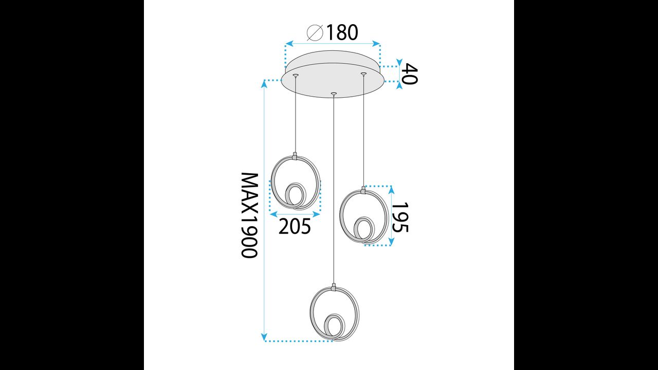 The modern pendant lamp with three decorative golden rings is designed for interiors where style, lightness, and visual impact matter. Its gently curved forms create a sculptural composition that looks stunning above a dining table, in a living room, or in an elegant hallway. The integrated LED lighting softly diffuses the light, adding a cozy yet refined atmosphere to the space.