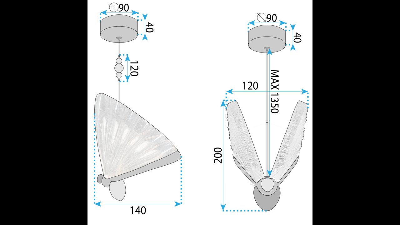An exceptional LED lamp inspired by the delicate form of a butterfly combines modern design with artistic style. Its subtle shape, featuring transparent wings with a textured plastic structure and a glossy finish, brings a unique character to any interior. Perfect for a living room, bedroom, or elegant hallway, it creates a pleasant and ambient atmosphere.