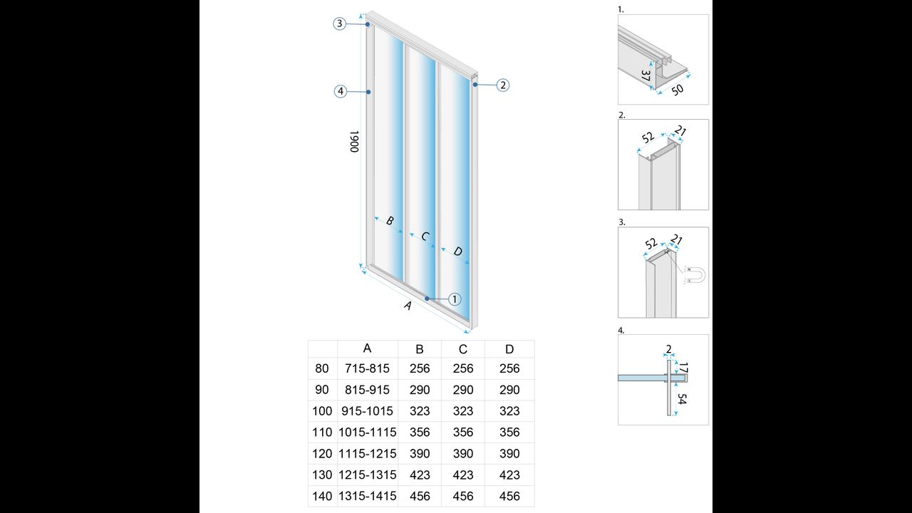 | Height of the shower door | 190 cm |