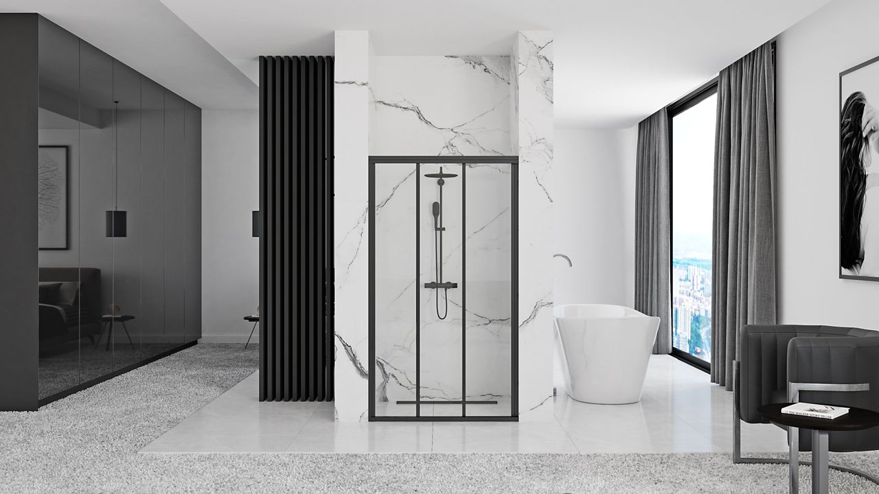 Sliding doors do not take up much space, which is why they are especially recommended for owners of small bathrooms. This type of model is very popular. When opening them, you also do not have to worry about them snagging on other fittings. Another important advantage is the ease of cleaning. The sashes slide on guides. This, in turn, translates into a lower risk of mechanical damage, compared to hinged models. The Rea Alex Black door is also distinguished by its quiet and smooth operation, making it a pleasure to use. The entire unit consists of one fixed and two sliding elements. The target door direction is right-handed. In order to change the direction of the door to the left-hand side, the vertical profiles in the sliding element with the protruding handle strip must be unscrewed and moved to the other side of the glass. If you choose the presented model, you can count on easy installation. A set of gaskets is also included.