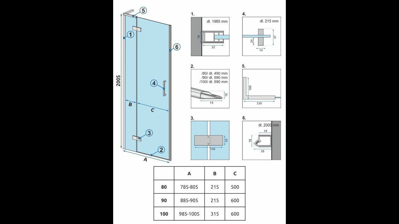 | Height of the shower door | 200 cm |