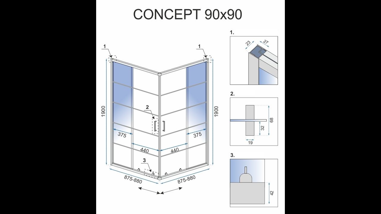 OK| Size (door x wall): | 90x90 |