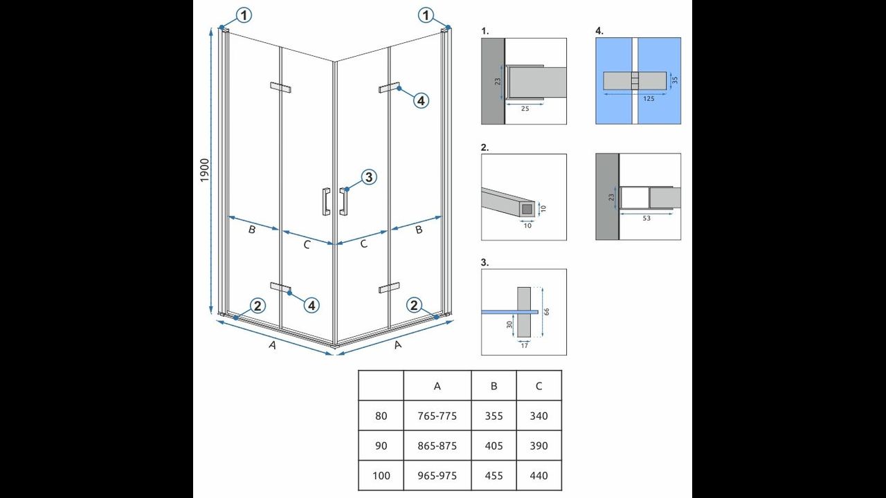 The Molier shower enclosure consists of two glass doors decorated with elegant elements in chrome. This model is ideal for small and original bathrooms. The doors can be folded into the wall. It offers unlimited possibilities for practical use of the bathroom.