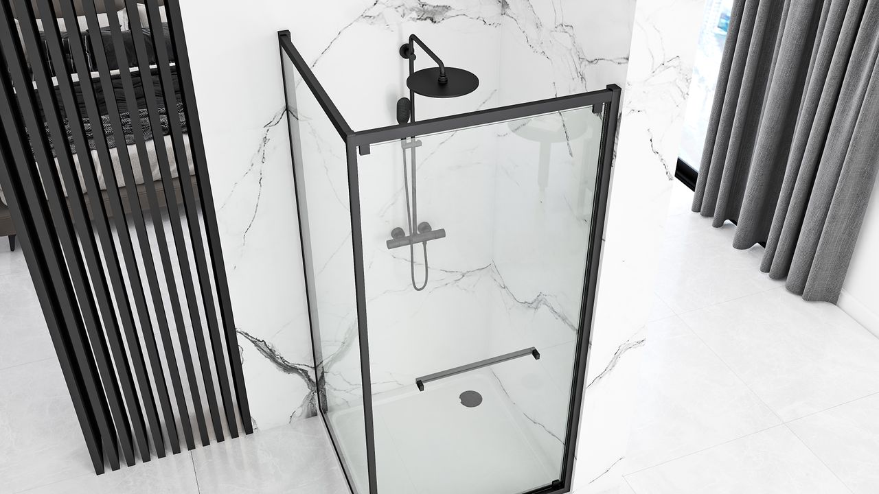 We present you a beautiful and extremely functional corner Space IN shower enclosure. It is a product that will perfectly fill your bathroom space while maintaining the impeccable appearance and aesthetics of the interior. Thanks to the black finishing elements, our product is extremely versatile and will certainly fit into your sanitary room decor. Thanks to its construction, the Space IN cabin allows us to install it on a shower tray of different heights or directly on the floor. The shower door slides inwards, which helps in the practical use of the bathroom.