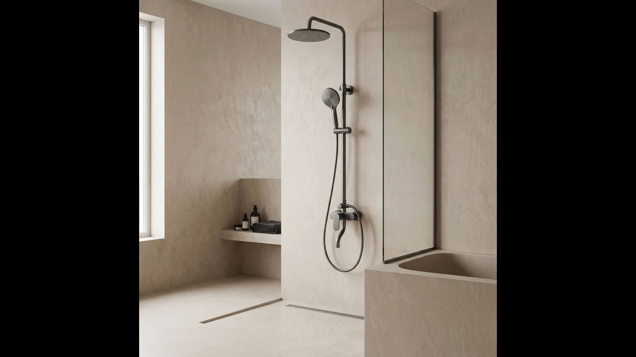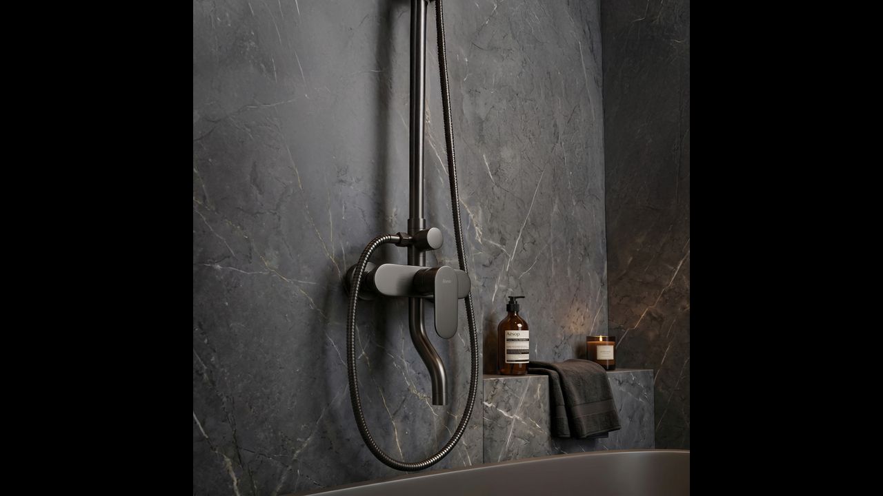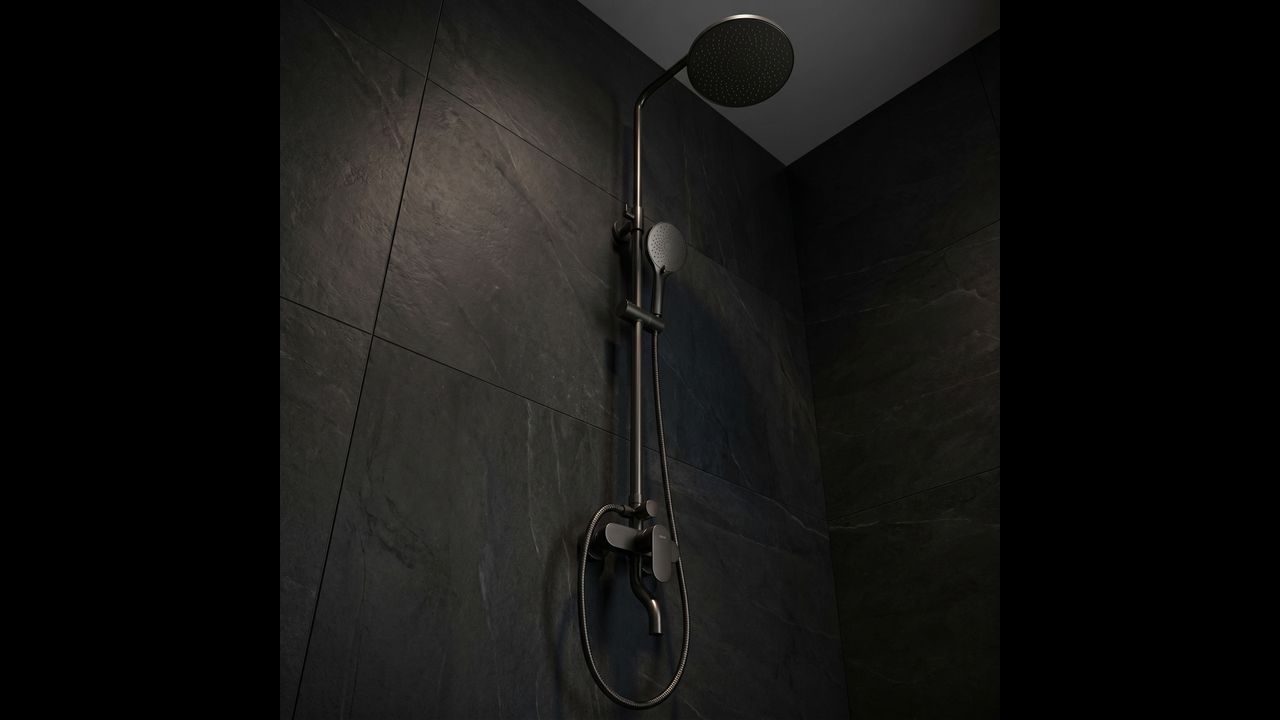 The Lungo shower set with thermostat in a noble Titanium finish is a proposal for design connoisseurs seeking an alternative to classic solutions. The unique, dark gray shade with a satin structure combined with the iconic Lungo line creates a shower system of extraordinary depth and prestigious character. Thanks to innovative coating technology, this set combines raw aesthetics with maximum durability.