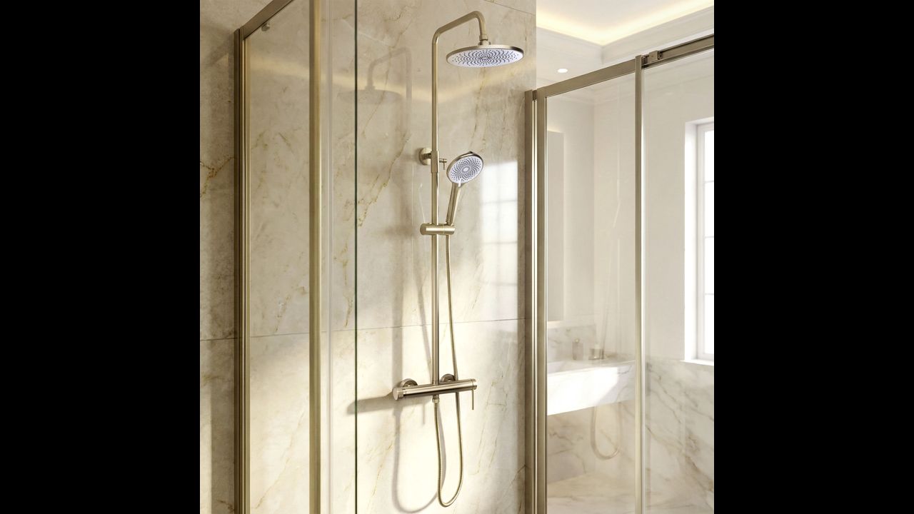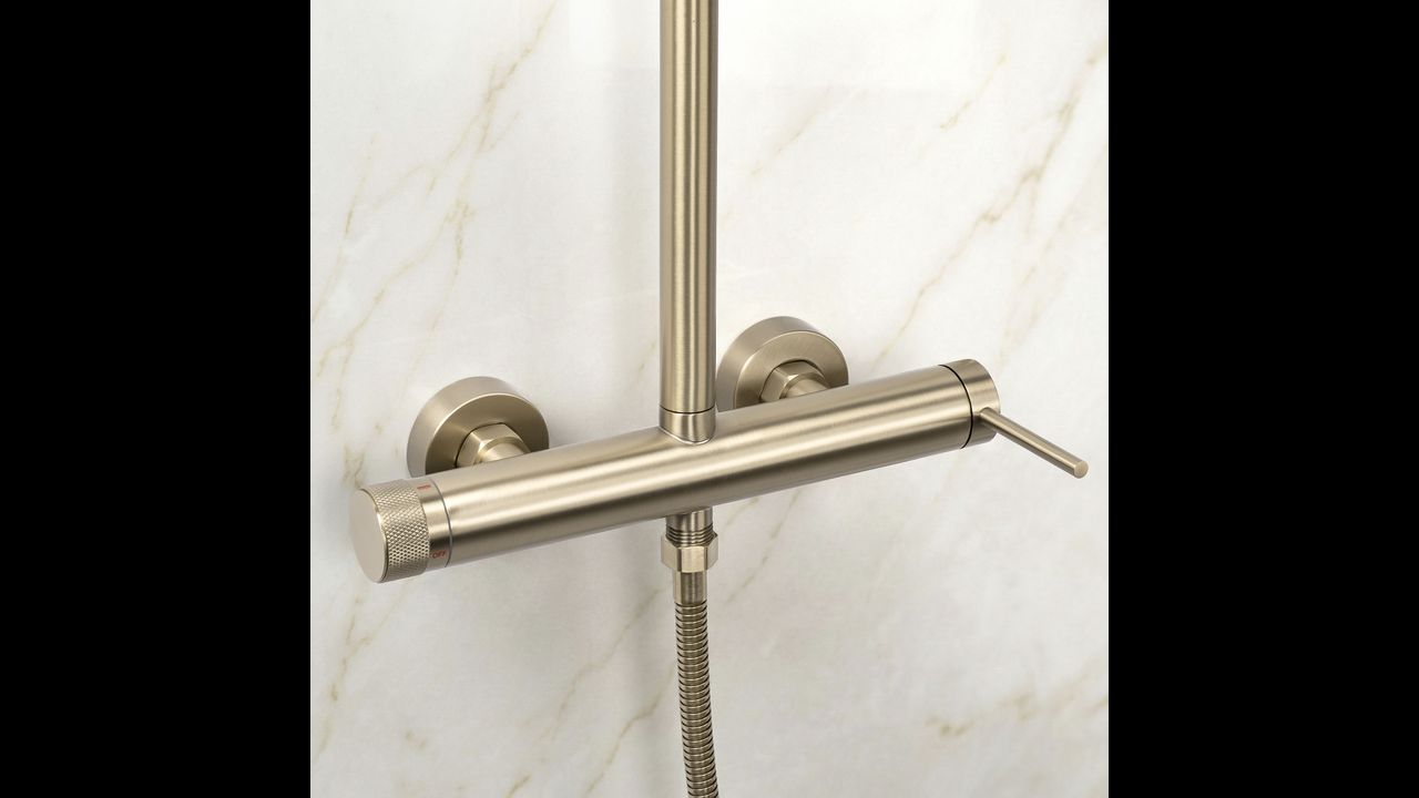 Are you looking for a functional and stylish solution for your shower area? Discover the Rea Foss Clif exposed shower set in the modern Brushed Gold finish. It is the perfect choice for those who appreciate minimalist design and well-thought-out features. The solid brass body of the mixer and the adjustable height of the shower head ensure comfortable use.
