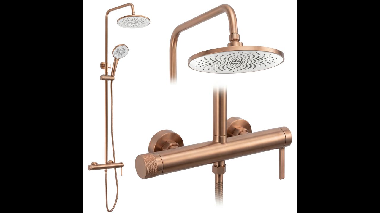 Are you looking for a functional and stylish solution for your shower area? Check out the Rea Rivo exposed shower set in a modern Brushed Copper finish. It is an ideal proposition for people who value minimalist design and thoughtful features. The solid brass body of the mixer and the adjustable height of the rain shower ensure comfort of use.