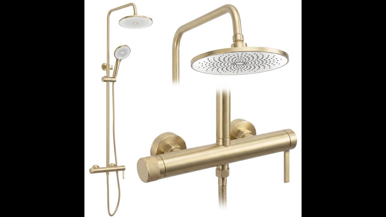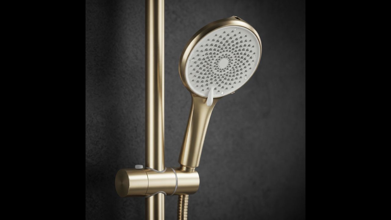 Are you looking for a functional and stylish solution for your shower area? Check out the Rea Rivo exposed shower set in a modern Brushed Gold finish. It is an ideal proposition for people who value minimalist design and thoughtful features. The solid brass body of the mixer and the adjustable height of the rain shower ensure comfort of use.