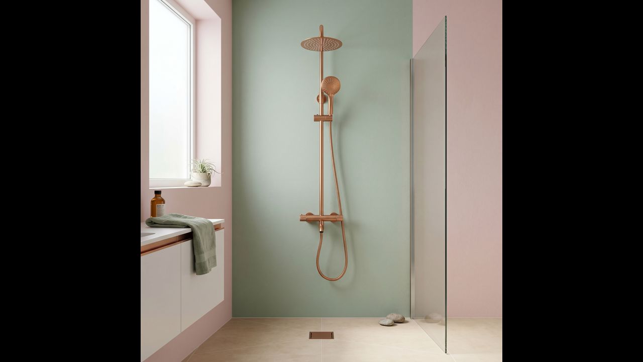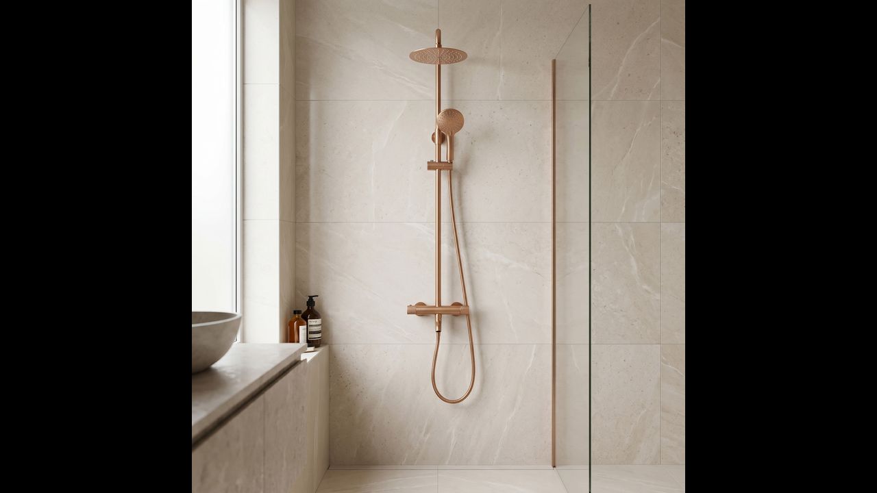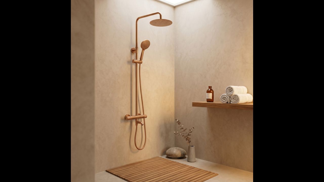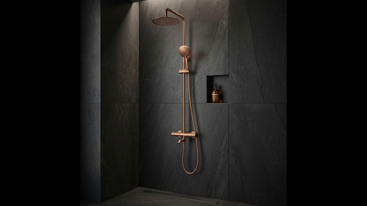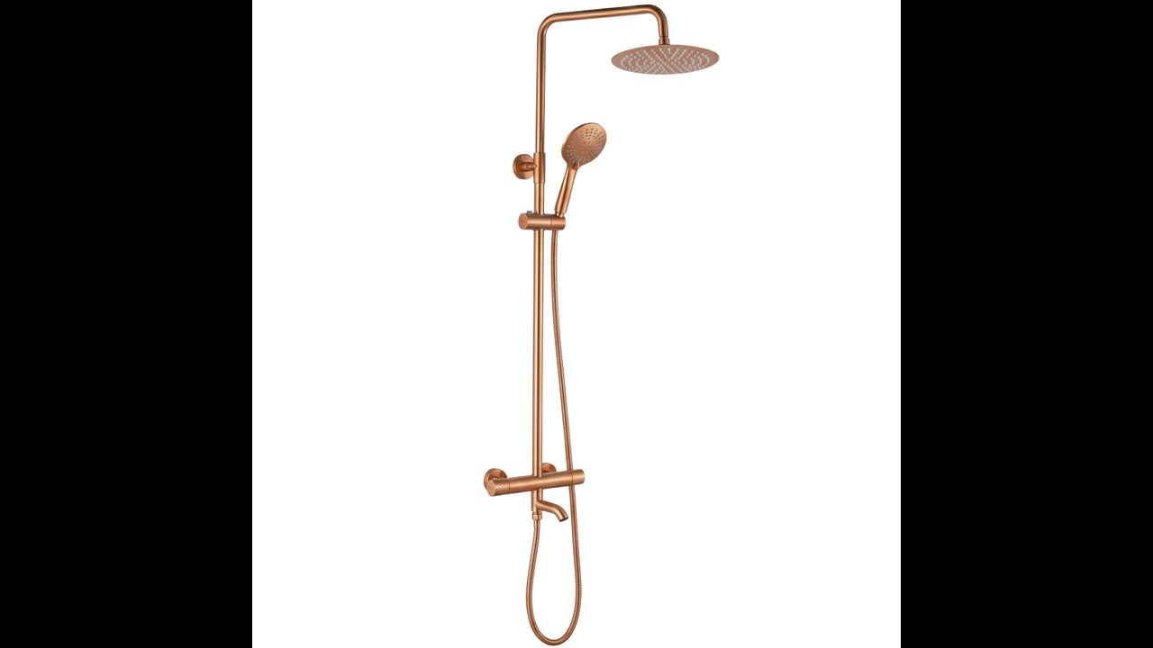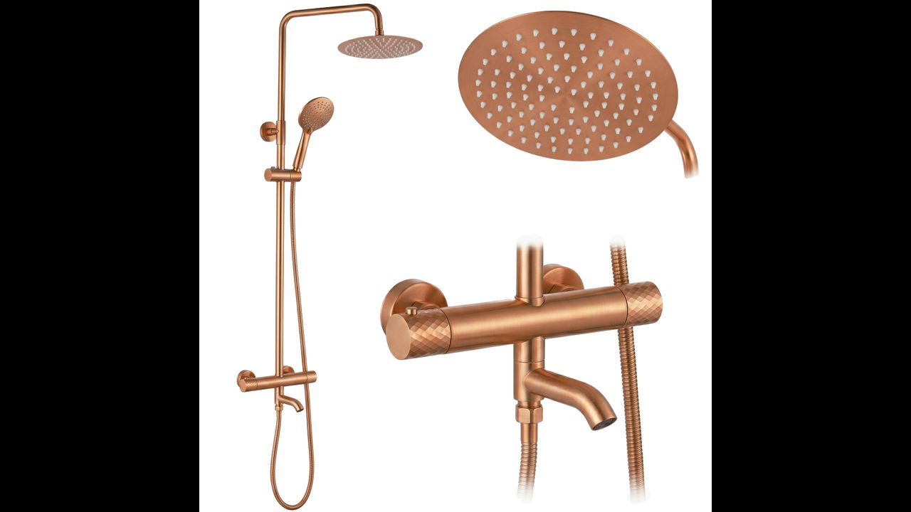 The Rea Lungo Diamond shower set with thermostat and spout in Brushed Copper is a proposal for lovers of unconventional luxury and warm, metallic colors. The uniqueness of the Diamond series is manifested in the precise cross-knurling on the control knobs, referencing a diamond cut. This jewelry-like detail combined with the copper finish creates a shower system with a unique, industrial character.