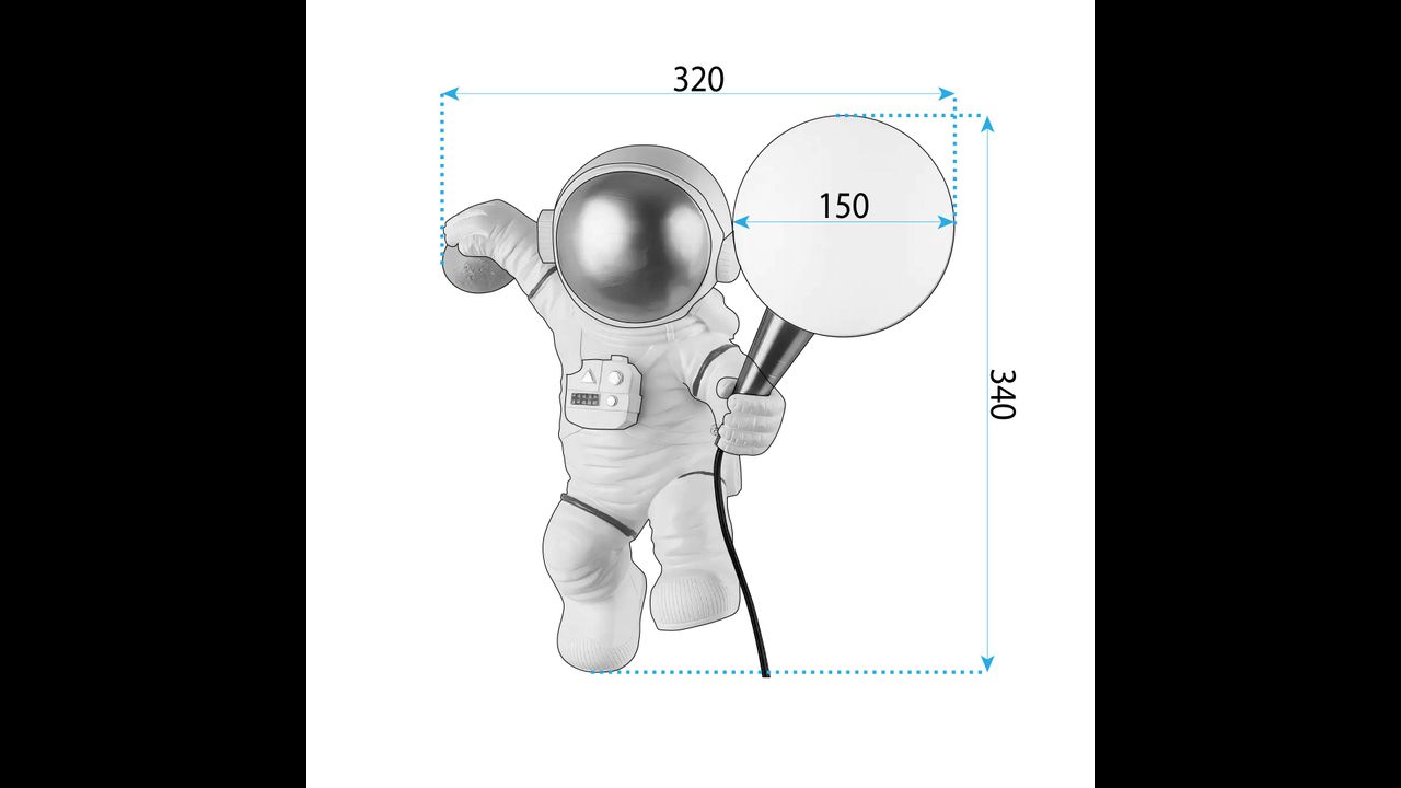 A decorative wall light shaped like an astronaut brings a touch of outer space. The soft, diffused glow sets a cosy mood in a kid’s room, bedroom or relaxation corner.
