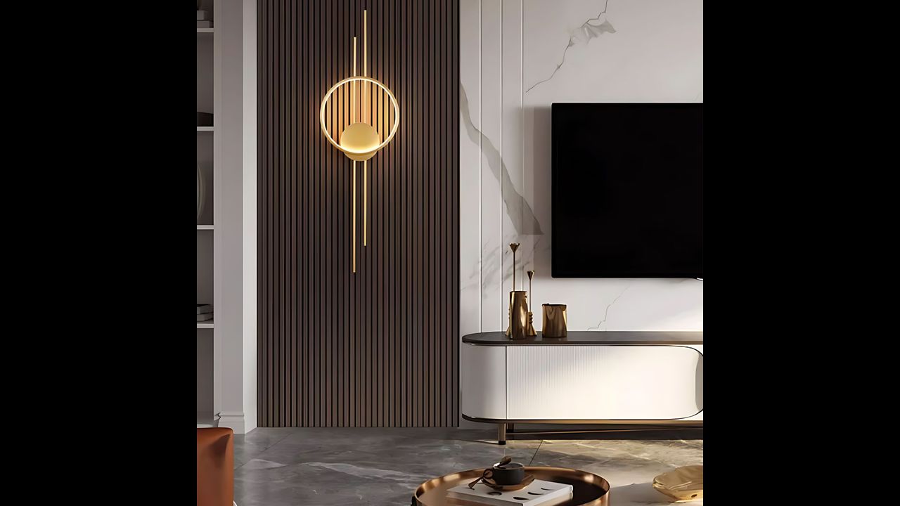 The modern LED wall light in brushed gold is a design accent with a decorative character, combining aesthetics with ambient lighting.